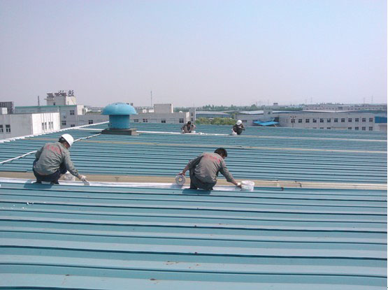 4、漏水维修时可以在屋面所有接缝,风机管道周围,采光板,螺钉等易渗水部位,采用耐候性好的弹性防水涂料和特殊的缝织聚酯布,多次涂刷而形成的无缝防水体系,针对旧厂房改造或者旧屋面翻新,在整个屋面达到防水要求后,再在屋面整体喷涂两遍防水涂料。 |