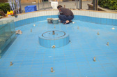j、在汗渗部位布置注浆孔,孔距一般为8-10cm,孔径约12mm,孔深约40cm(或根据工程具体情况而定); k、用高压水枪(水压1mpa左右)将注浆孔清洗干净; l、埋设注浆管,管深约10cm; m、封管,用微膨胀速凝材料将注浆管与混凝土孔隙封实,管壁周边再用改性环氧浆泥密封,范围约?10mm; n、待封管材料固结后,作灌浆防渗处理。灌浆压力根据进浆情况确定; o、灌浆时,采用正压与负压并举的方式进行。 |